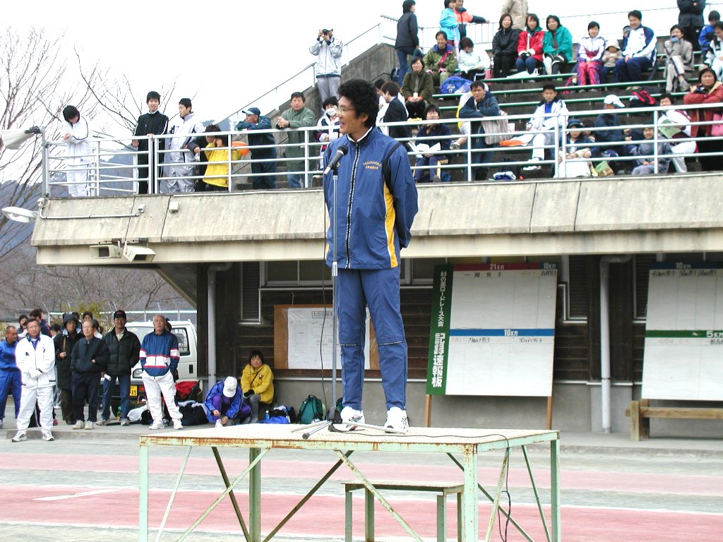 今年も、ヘリコプター登場。花束を落とす瞬間をとらえることに成功した! 20回記念大会で、中山竹道先生が、呼ばれて来たのだった。 話によると、この人は、他の大会をすっぽかしたことがあるとか・・・・ いいなあ、そう言う人って嫌いじゃないな。 しかも、”マラソンは、つまらない!”と、力説していったのだった。(だったらやめれば・・)