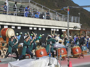 いつもの様に太鼓で、人寄せする開会式が、始まりました。