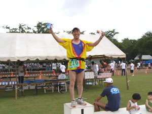 早速、勝手に表彰台で、祝うのだった。