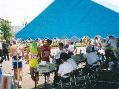 しかし、この日は暑かった。 こんな暑いのに、高橋尚子とトップグループは、どんどん飛ばして、先に行ってしまいました。 私は、遅くも速くもないので、また、ほとんど一人たびになってしまいました。 |